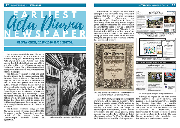 Spring 2026 · Torch: U.S. · ACTA DIURNA