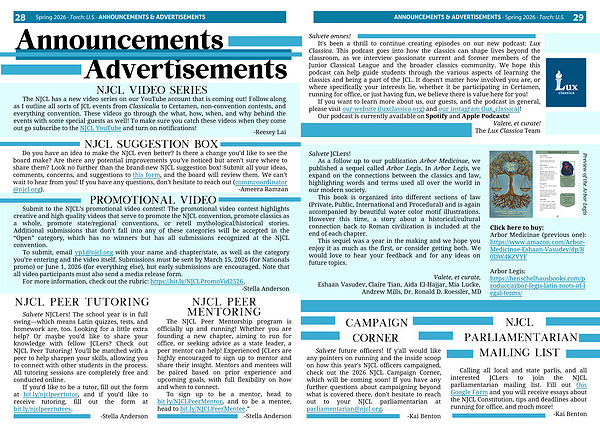 Spring 2026 · Torch: U.S. · ANNOUNCEMENTS & ADVERTISEMENTS