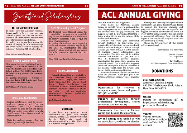 Your contributions to the ACL annual fund make this possible. When you give to the American Classical League, you are investing in: