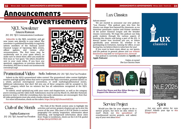 Winter 2025 · Torch: U.S. · ANNOUNCEMENTS & ADVERTISEMENTS