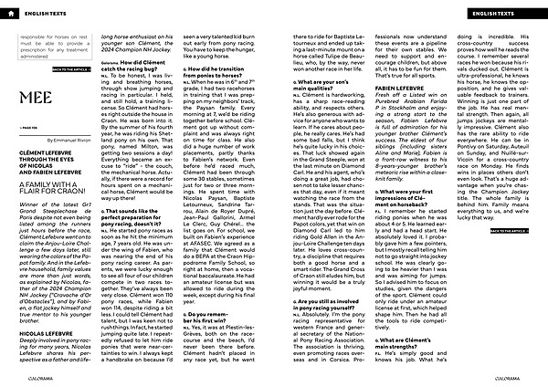 FABIEN LEFEBVRE Fresh off a Listed win on Purebred Arabian Farida P in Stockholm and enjoying a strong start to the season, Fabien Lefebvre is full of admiration for his younger brother Clément’ s success. The eldest of four siblings( including sisters Aline and Marie), Fabien is a front-row witness to his 8-years-younger brother’ s meteoric rise within a closeknit family.
