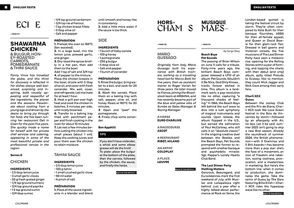 PRÉPARATION 1. Preheat the oven to 180 ° C( fan-assisted). 2. In a large bowl, mix the lemon juice, pressed garlic, and ginger. 3. Dry-toast the spices briefly in a hot pan, then add them to the bowl. Add 1 tsp of salt and 3 / 4 tsp 4. of pepper to the mixture. Place the chicken breasts in the bowl, drizzle with 5 tbsp olive oil, and cover with fresh coriander. Mix well, cover, and refrigerate. Let marinate for at least 1 hour. 5. Heat a grill pan over high heat and cook the chicken in batches, 3 minutes per side, until nicely browned. 6. Transfer to a baking tray lined with parchment paper and finish cooking in the oven for about 10 minutes. 7. Let rest a few minutes before cutting the chicken into small pieces( about 1 cm). Keep the cooking juices and pour them over the chicken to retain moisture.
