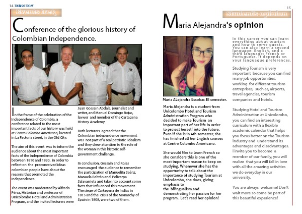She would like to learn French so she considers this is one of the most important reason to keep on studying. Whenever she has the opportunity to talk about the importance of studying Tourism at Unicolombo, she does, giving emphasis to