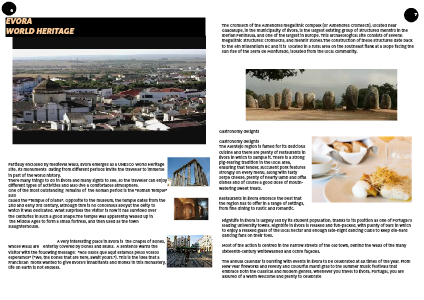 The Alentejo region is famed for its delicious cuisine and there are plenty of restaurants in Évora in which to sample it. There is a strong pig-rearing tradition in the local area, ensuring that tender, succulent pork features strongly on every menu, along with tasty Serpa cheese, plenty of hearty lamb and offal dishes and of course a good dose of mouth-watering sweet treats.