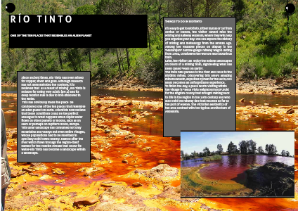 Since ancient times, Rio Tinto has been mined for copper, silver and gold. Although research has not demonstrated the contrary, it is believed that as a result of mining , Río Tinto is notable for being very acidic (pH 2) and its deep reddish hue is due to iron dissolved in the water.