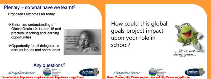 Global Goals 12, 14 and 15 and