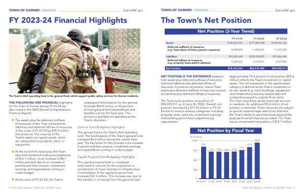 THE FOLLOWING ARE FINANCIAL highlights for the Town of Garner during FY 23-24 ( as also noted in the 2024 Annual Comprehensive Financial Report ):