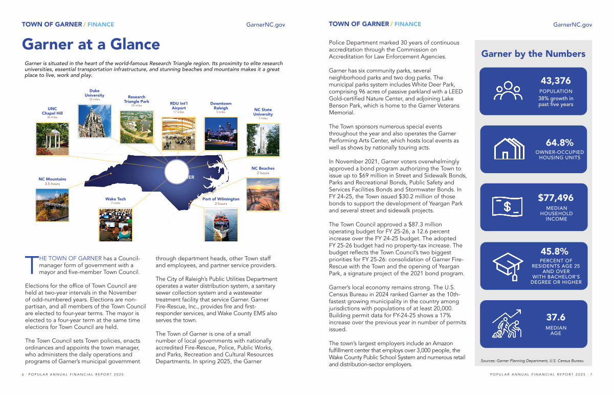 THE TOWN OF GARNER has a Councilmanager form of government with a mayor and five-member Town Council.