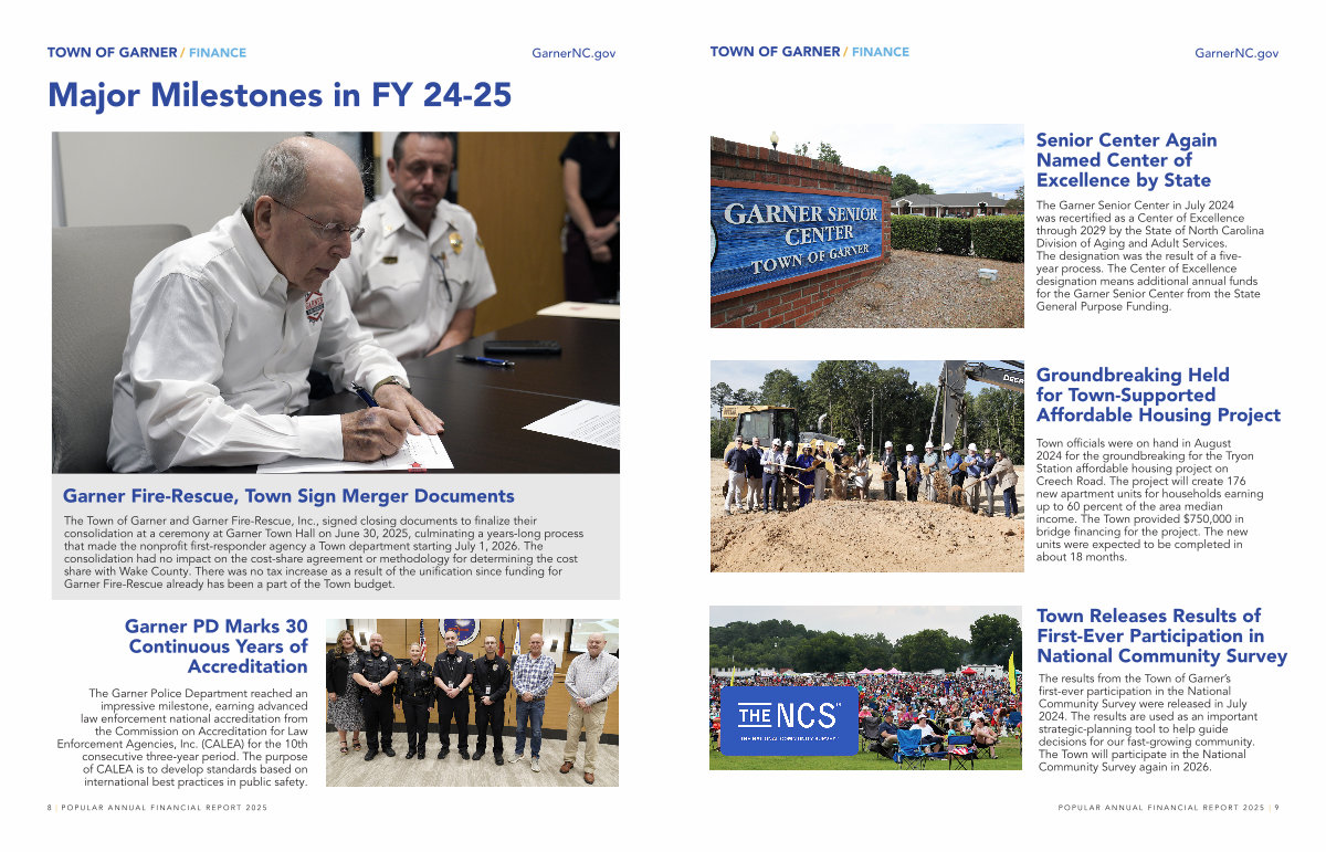 The results from the Town of Garner’ s first-ever participation in the National Community Survey were released in July 2024. The results are used as an important strategic-planning tool to help guide decisions for our fast-growing community. The Town will participate in the National Community Survey again in 2026.