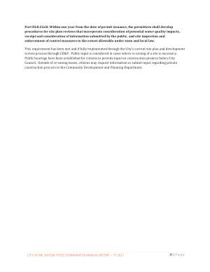 Part III . B . f . iii . B : Within one year from the date of permit issuance , the permittees shall develop procedures for site plan reviews that incorporate consideration of potential water quality impacts , receipt and consideration of information submitted by the public , and site inspection and enforcement of control measures to the extent allowable under state and local law .