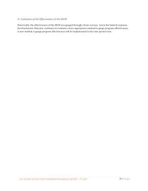 Historically , the effectiveness of this MCM was gauged through citizen surveys . Given the limited response , the Stormwater Educator continues to evaluate a more appropriate method to gauge program effectiveness . A new method to gauge program effectiveness will be implemented in the next permit term .