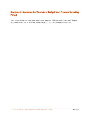 There are no necessary revisions to the assessment of controls or fiscal year analysis reporting in the Year Five Annual Report covering the period beginning October 1 , 2015 through September 30 , 2016 .