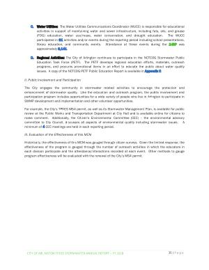 Regional Activities : The City of Arlington continues to participate in the NCTCOG Stormwater Public Education Task Force ( PETF ). The PETF develops regional education efforts , materials , outreach programs , and procures promotional items in an effort to educate the public about water quality issues . A copy of the NCTCOG PETF Public Education Report is available in Appendix C .