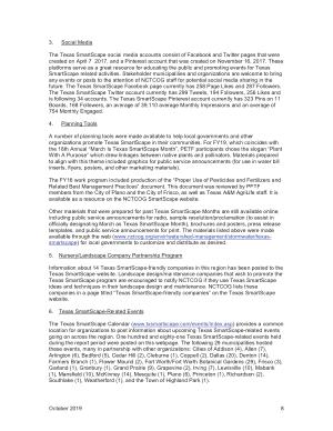The Texas SmartScape social media accounts consist of Facebook and Twitter pages that were created on April 7 , 2017 , and a Pinterest account that was created on November 16 , 2017 . These platforms serve as a great resource for educating the public and promoting events for Texas SmartScape related activities . Stakeholder municipalities and organizations are welcome to bring any events or posts to the attention of NCTCOG staff for potential social media sharing in the future . The Texas SmartScape Facebook page currently has 258 Page Likes and 287 Followers . The Texas SmartScape Twitter account currently has 299 Tweets , 194 Followers , 256 Likes and is following 34 accounts . The Texas SmartScape Pinterest account currently has 323 Pins on 11 Boards , 168 Followers , an average of 39,110 average Monthly Impressions and an average of 754 Monthly Engaged .