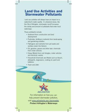 Land use activities will always have an impact on a watershed ’ s water quality . In urbanized areas , like the City of Arlington , stormwater runoff increases the variety and amount of pollutants that enter local waterways .
