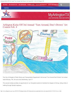 http :// www . arlington-tx . gov / news / 2019 / 01 / 30 / arlington-kicks-off-3rd-annual-turn-around-dont-drown-art-contest-feb-4 /[ 1 / 31 / 2019 8:26:23 AM ]