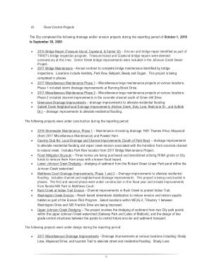 The City completed the following drainage and / or erosion projects during the reporting period of October 1 , 2019 to September 30 , 2020 :