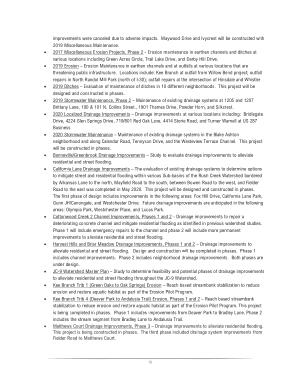 � 2017 Miscellaneous Erosion Projects , Phase 2 - Erosion maintenance in earthen channels and ditches at various locations including Green Acres Circle , Trail Lake Drive , and Derby Hill Drive .