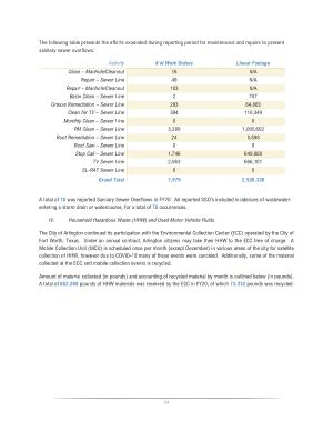 The City of Arlington continued its participation with the Environmental Collection Center ( ECC ) operated by the City of Fort Worth , Texas . Under an annual contract , Arlington citizens may take their HHW to the ECC free of charge . A Mobile Collection Unit ( MCU ) is scheduled once per month ( except December ) in various areas of the city for satellite collection of HHW , however due to COVID-19 many of these events were canceled . Additionally , some of the material collected at the ECC and mobile collection events is recycled .