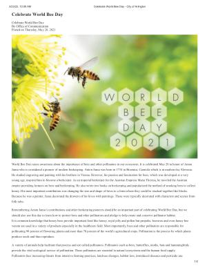 3 / 23 / 22 , 10:09 AM Celebrate World Bee Day - City of Arlington