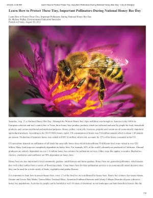 3 / 23 / 22 , 9:36 AM Learn How to Protect These Tiny , Important Pollinators During National Honey Bee Day - City of Arlington