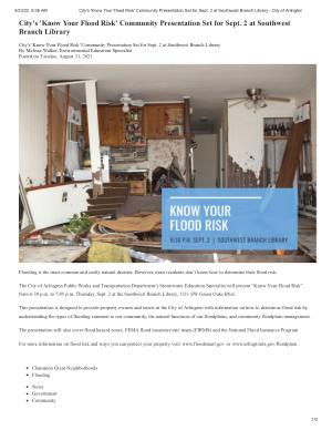 3 / 23 / 22 , 9:36 AM City ' s ' Know Your Flood Risk ' Community Presentation Set for Sept . 2 at Southwest Branch Library - City of Arlington