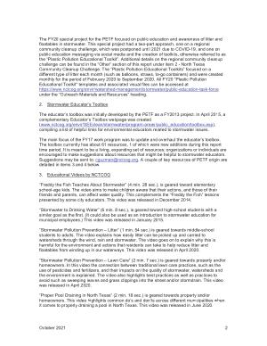 The FY20 special project for the PETF focused on public education and awareness of litter and floatables in stormwater . This special project had a two-part approach , one on a regional community cleanup challenge , which was postponed until 2021 due to COVID-19 , and one on public education messaging via social media and the creation of toolkits , otherwise referred to as the “ Plastic Pollution Educational Toolkit ”. Additional details on the regional community cleanup challenge can be found in the “ Other ” section of this report under item 2 - North Texas Community Cleanup Challenge . The “ Plastic Pollution Educational Toolkits ” focused on a different type of litter each month ( such as balloons , straws , to-go containers ) and were created monthly for the period of February 2020 to September 2020 . All FY20 “ Plastic Pollution Educational Toolkit ” templates and associated visual files can be accessed at https :// www . nctcog . org / envir / watershed-management / stormwater / public-education-task-force under the “ Outreach Materials and Resources ” heading .