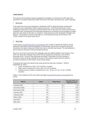 Table 4 : User statistics for the yard waste web page ( www . dfwstormwater . com / yardwaste ) by month .
