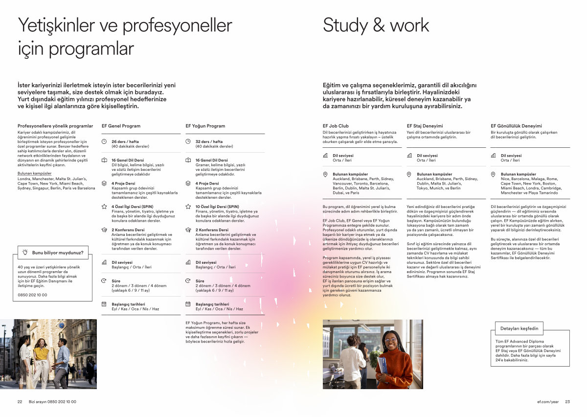 40 yaş ve üzeri yetişkinlere yönelik uzun dönemli programlar da sunuyoruz. Daha fazla bilgi almak için bir EF Eğitim Danışmanı ile iletişime geçin.