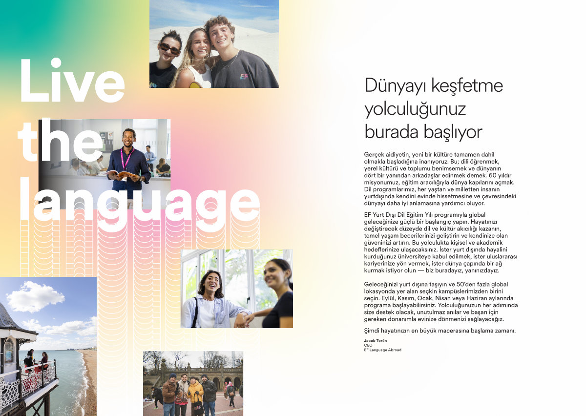 EF Yurt Dışı Dil Eğitim Yılı programıyla global geleceğinize güçlü bir başlangıç yapın. Hayatınızı değiştirecek düzeyde dil ve kültür akıcılığı kazanın, temel yaşam becerilerinizi geliştirin ve kendinize olan güveninizi artırın. Bu yolculukta kişisel ve akademik hedeflerinize ulaşacaksınız. İster yurt dışında hayalini kurduğunuz üniversiteye kabul edilmek, ister uluslararası kariyerinize yön vermek, ister dünya çapında bir ağ kurmak istiyor olun— biz buradayız, yanınızdayız.