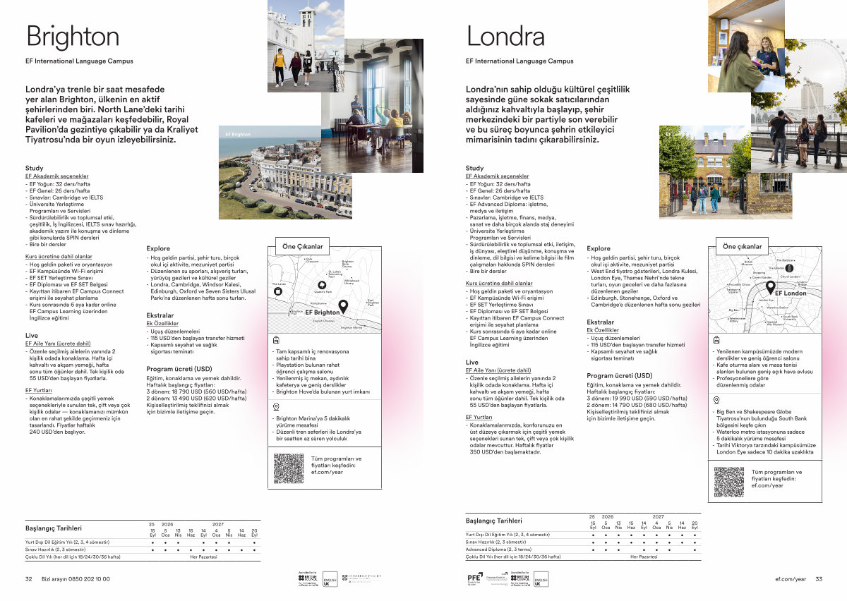 - EF Yoğun: 32 ders / hafta- EF Genel: 26 ders / hafta- Sınavlar: Cambridge ve IELTS- Üniversite Yerleştirme