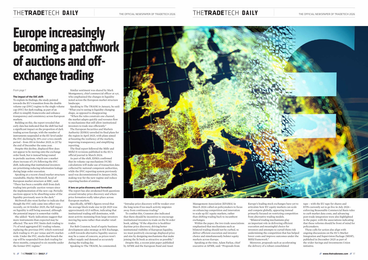 Management Association( EFAMA) in March 2026 called on policymakers to focus on enhancing competition and innovation to scale up EU equity markets, rather than shifting trading back to incumbent exchanges.