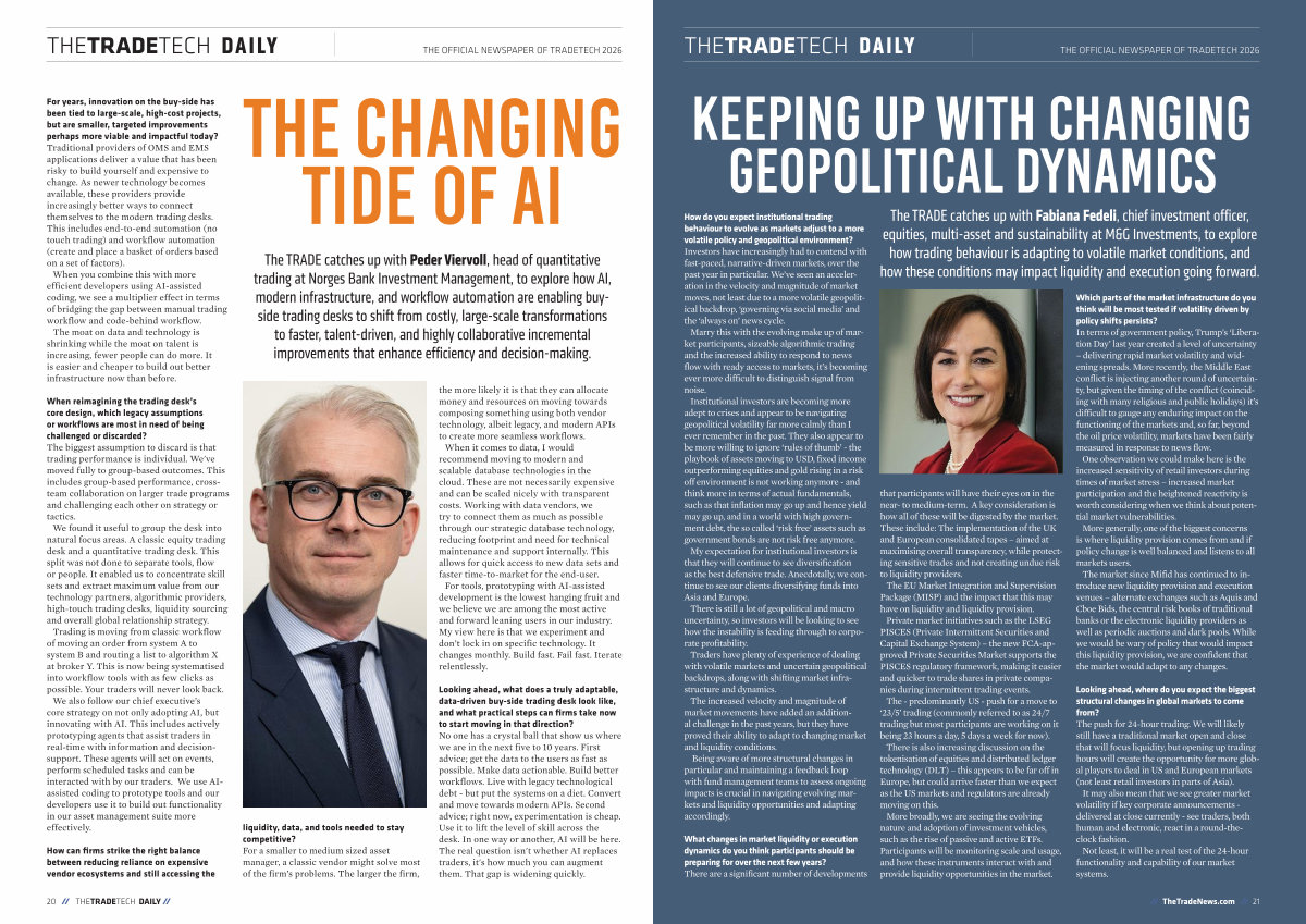 The TRADE catches up with Peder Viervoll, head of quantitative trading at Norges Bank Investment Management, to explore how AI, modern infrastructure, and workflow automation are enabling buyside trading desks to shift from costly, large-scale transformations to faster, talent-driven, and highly collaborative incremental improvements that enhance efficiency and decision-making.