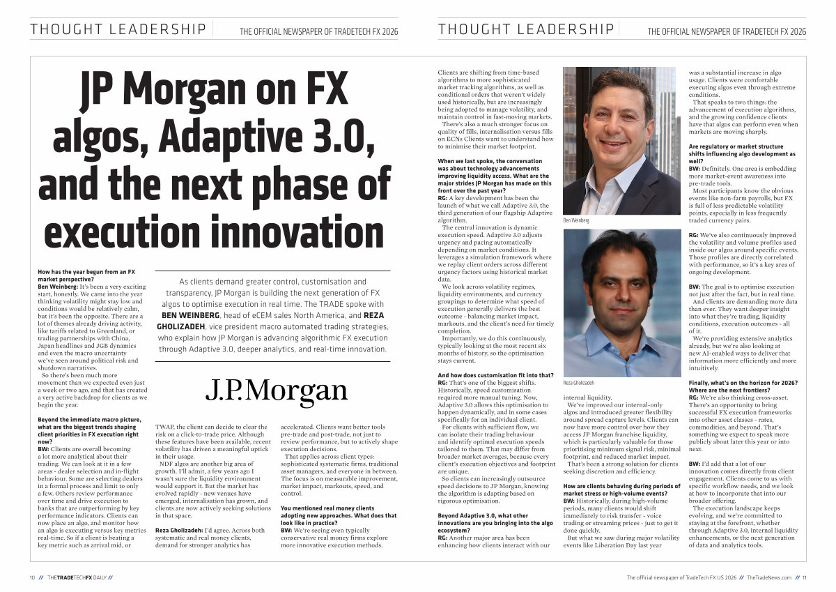 The official newspaper of TradeTech FX US 2026 TheTradeNews. com 11