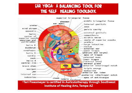 ~Teri Freesmeyer is certified in Auriculotherapy through Southwest Institute of Healing Arts, Tempe AZ