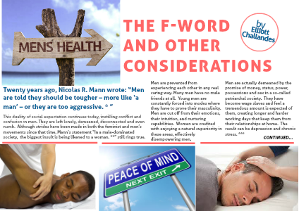 Twenty years ago, Nicolas R. Mann wrote: “Men are told they should be tougher – more like ‘a man’ – or they are too aggressive. * ”