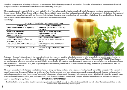 chemical components, allowing pathogens to mutate and find other ways to attack our bodies. Essential oils consist of hundreds of chemical components which can block many mutations attempted by pathogens.