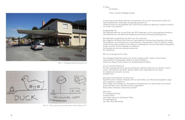 Das Heidegger Gebäude platziert sich an der Landstrasse 251 , direkt vor dem Kreisel . Ursprünglich eine Autogarage , bekannt für getunte Motoren , danach ein Migros Partner , bekannt für baldablaufende Produkte .