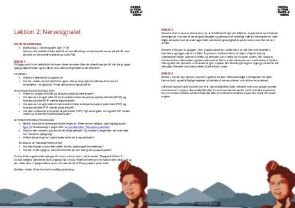 Øvelse 2 samles op i plenum. Læreren og eleverne skal i fællesskab følge nervesignalet fra håndhjerne-hånd og sætte faglige begreber på de dele af nervesystemet, som aktiveres undervejs.
