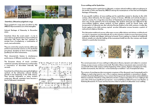 Cross-crafting and its symbolism in Lithuania, a unique cultural tradition without analogues in the world, in 2001 was listed by UNESCO among the masterpieces of the Oral and Intangible Heritage of Humanity.