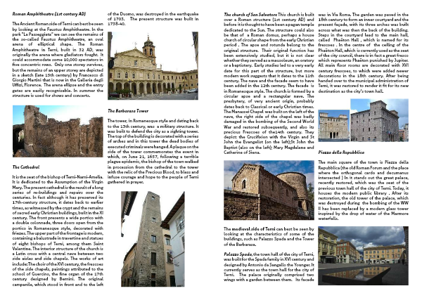The Ancient Roman side of Terni can best be seen by looking at the Faustus Amphitheatre. In the park “La Passeggiata” we can see the remains of the so-called Faustus Amphitheatre, an oval arena of elliptical shape. The Roman Amphitheatre in Terni, built in 32 AD, was originally the arena where gladiators fought. It could accommodate some 10,000 spectators in five concentric rows. Only one storey survives, but the remains of an upper storey are depicted in a sketch (late 15th century) by Francesco di Giorgio Martini that is now in the Galleria degli Uffizi, Florence. The arena ellipse and the entry gates are easily recognisable. In summer the structure is used for shows and concerts.