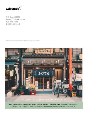 LOOK INSIDE FOR INSPIRING JOURNEYS , EXPERT ADVICE AND EXCLUSIVE OFFERS . CONTACT US TODAY AT 800 · 375 · 4685 OR RESERVATIONS @ ANDREWHARPER . COM