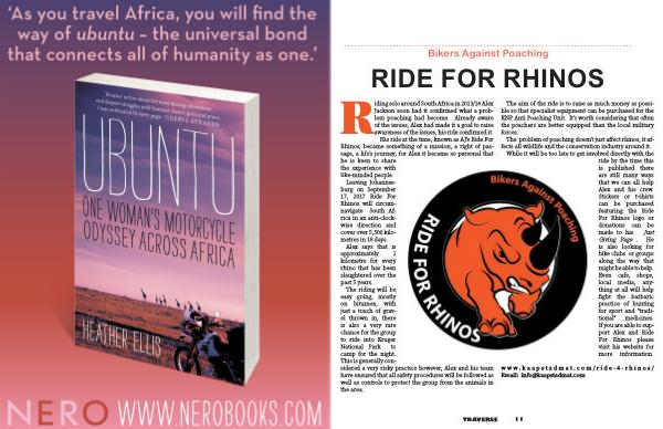 While it will be too late to get involved directly with the ride by the time this is published there are still many ways that we can all help Alex and his crew . Stickers or t-shirts can be purchased featuring the Ride For Rhinos logo or donations can be made to his Just Giving Page . He is also looking for bike clubs or groups along the way that might be able to help . Even cafe , shops , local media , anything at all will help fight the barbaric practice of hunting for sport and " traditional " medicines . If you are able to support Alex and Ride For Rhinos please visit his website for more information .
