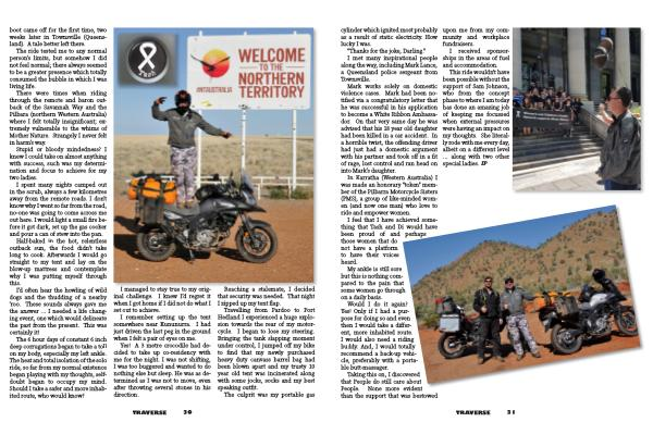 There were times when riding through the remote and baron outback of the Savannah Way and the Pilbara ( northern Western Australia ) where I felt totally insignificant ; extremely vulnerable to the whims of Mother Nature . Strangely I never felt in harm ’ s way .