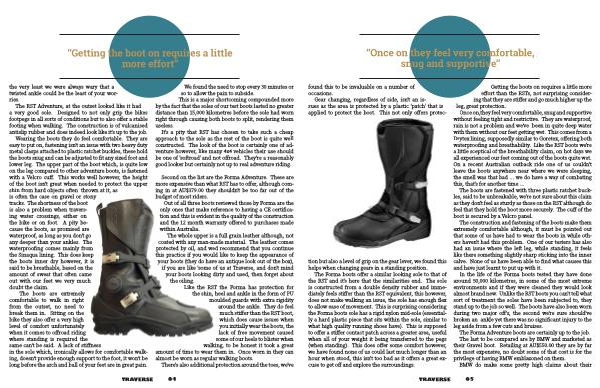 Getting the boots on requires a little more effort than the RSTs , not surprising considering that they are stiffer and go much higher up the leg , great protection . Once on , they feel very comfortable , snug and supportive without feeling tight and restrictive . They are waterproof , rain is not a problem and we ' ve been in quite deep water with them without our feet getting wet . This comes from a Drytex lining , supposedly similar to Goretex , offering both waterproofing and breathability . Like the RST boots we ' re a little sceptical of the breathability claim , on hot days we all experienced our feet coming out of the boots quite wet . On a recent Australian outback ride one of us couldn ' t leave the boots anywhere near where we were sleeping , the smell was that bad ... we do have a way of combating this , that ' s for another time ...