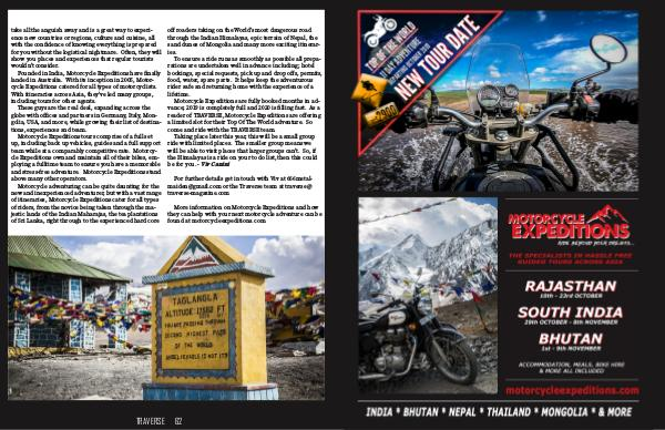 reader of TRAVERSE, Motorcycle Expeditions are offering
