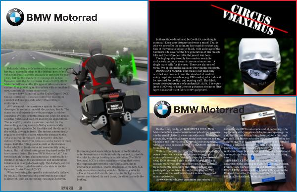 Relaxed cruising with active cruise control, without having to manually adapt to the driving speed of the vehicle in front – already available in cars now for many years, but not the standard in motorcycles to date. However, with the Active Cruise Control (ACC), BMW Motorrad will soon offer this type of rider assistance system, thus providing motorcyclists with a completely new, comfortable riding experience. The new BMW Motorrad Active Cruise Control (ACC). Cruise control with distance control for maximum comfort and best possible safety when riding a motorcycle. ACC is a novel rider assistance system that was developed in cooperation with the partner, Bosch. The many years of experience with passenger car driver assistance systems of both companies could be applied selectively here and used for motorcycle applications. The new ACC provides maximum comfort for the demanding touring motorcyclist by automatically regulating the speed set by the rider and the distance to the vehicle driving in front. The system automatically regulates the vehicle speed when the distance to the vehicle in front is reduced and keeps the distance defined by the rider. This distance can be varied in three stages. Both the riding speed as well as the distance to the vehicle in front can be set conveniently using a button. The individual settings are displayed on the TFT instrument cluster. The new BMW Motorrad ACC has two selectable control characteristics: comfortable or dynamic, in which the acceleration and deceleration behaviour is changed accordingly. The distance control can also be deactivated in order to be able to use the Dynamic Cruise Control (DCC). When cornering, the speed is automatically reduced by the ACC if required and a comfortable lean angle is aimed at. With an increasing lean angle, however, the braking and acceleration dynamics are limited in order to maintain a stable rideability and not to unsettle the rider by abrupt braking or acceleration. The BMW Motorrad ACC is a rider assistance system that leaves the responsibility with the rider and allows him to intervene at all times. That is also because the new ACC only responds to moving vehicles. Stationary vehicles – like at the end of a traffic jam or at traffic lights – are are not considered. In such cases, the rider has to do the braking. NEWS MAGAZINE TRAVERSE 150 150