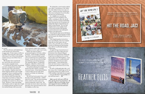 to camp.” The friendliness and helpfulness of the Swedes has never been exaggerated. If you make an effort to be polite and respectful, they quite often break free of the cold and stoic exterior and go out of their way to help you. We thanked them and found our way to the site, and what a spectacular campsite it was. A mild drizzle fell while we pitched our tents, strapped the tarpaulin between two trees and started our campfire. Stephen made the most exquisite dinner and we both managed to burn something while drying our riding gear fireside. At this point we were less than two hours from my home in Västervik, and had I been alone I would’ve probably just carried on all the way back. However, I was now riding with Stephen and we opted for a night of camping instead and we’d found this extraordinary wild camp site, had a fantastic night with campfire food, plus an extra night in our tents. Before we went to sleep, I presented Stephen with yet another surprise. I had brought a Swedish flag which I ceremonially handed over as I declared him an Honorary Swede. It was all very informal but nevertheless a touching moment. We raised the flag on a makeshift flagpole, chilled for a while at the campfire, and then went to sleep. I’d started suffering Post Adventure Stress Disorder before I actually returned home. It had started before I went to bed and was still there, greater, as I woke the following morning. We had had such a great time and become such good friends. I didn’t want it to end. The sun was beaming down while we broke camp and started toward the main road. We had only two hours ride to my home, but there were special treats in store for Stephen on the way. We visited the petrol station which was, when I was young in the 1980s, the only station in the area open at night. I used to go there sometimes when my craving for Cheez Doodles became too overwhelming. In a slightly more grown up manner we had a sandwich and coffee, carrying on after the quick pitstop until we reached Vimmerby; made famous by Astrid Lindgren in books like Pippi Longstocking and Emil in Lönneberga. For me and Stephen there was another kind of attraction; Bloms MX Racing, a motorcycle store specialising in Enduro and Motocross. Checking the time as we left Bloms we realised we still had plenty of time and swung by the Moped Museum in Hjorted. This inspiring place is run by a man called Bosse, who has mopeds from all over the world, new as well as old, and with every exhibit he has an alluring and fascinating story which he tells with devoted enthusiasm. All good things must come to an end and as we were riding the last kilometres from Bosse’s Moped Museum to my hometown Västervik I had time to reflect on the last few days on the road with Stephen. I had entered this trip as a dedicated solo rider but along the way my mind had changed. I had realised that there are other ways to experience a motorcycle adventure than on my own. I’m still a dedicated solo rider, and the chance that I would sign up for an organised group trip is slim to none. I will however, ride with friends again … and just like that I said goodbye to my new best mate … AJ Anders says he fairly new to ADV bike riding, but has always been adventurous. His Around On A Bike site and YouTube channel would suggest he's been on ADV bikes for some time, he's certainly into adventure. TRAVERSE 32