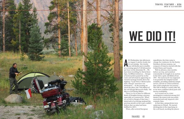 There is a lot of time for different kinds of thoughts during a journey , especially on a motorcycle . When we arrived in Sturgis at that time , I think both of us having analysed the previous month on the road , couldn ' t believe that our plan had been fulfilled in 100 %.