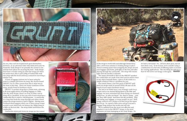 for you , they can ’ t be looped back upon themselves . However , on an adventure bike with dedicated racks we found the Andy Strapz to be possibly the easiest to use and the best option for securing the load . Andy Strapz don ’ t have a tensile rating for their flat straps yet when we tested were able to pull 230kg of loaded bike with one strap with the hook and loop connection surviving a similar load .